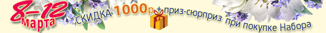 8 марта! Опубликовано otdel_prodazh - сб, 8 Мар. 2025 - 09:17 Дорогие вышивальщицы! В праздничный день 8 марта мужчины дарят подарки женщинам, женщины дарят подарки подругам и себе, любимой, а "Лавочка Фондучка" дарит к каждому НАБОРУ заказанному с 8 Подробнее о 8 марта!Войдите, чтобы оставлять комментарии Акция недели, скидка 10% Опубликовано otdel_prodazh - пн, 3 Мар. 2025 - 09:55 С понедельника 3 марта по воскресенье 9 марта 2025 г. действует скидка 10% на наборы ЭстЭ: 193 Мороз и солнце и 480 Натюрморт у окна. "Акция недели" - Акции и бонусы Подробнее о Акция недели, скидка 10%Войдите, чтобы оставлять комментарии Акция недели, скидка 10% Опубликовано otdel_prodazh - пн, 24 Фев. 2025 - 10:37 С понедельника 24 февраля по воскресенье 2 марта 2025 г. действует скидка 10% на наборы ЭстЭ: 336 Лесной пейзаж с цаплями и 497 Лето в лукошке . "Акция недели" - Акции и бонусы Подробнее о Акция недели, скидка 10%Войдите, чтобы оставлять комментарии Приглашаем на выставку! Опубликовано otdel_prodazh - пт, 21 Фев. 2025 - 15:57 С 20 по 23 февраля 2025 года Вышитые картины ЭстЭ и ЛФ Ждут встречи с вами На ВЕСЕННЕЙ выставке Подробнее о Приглашаем на выставку!Войдите, чтобы оставлять комментарии Акция недели, скидка 10% Опубликовано otdel_prodazh - пн, 17 Фев. 2025 - 10:42 С понедельника 17 февраля по воскресенье 23 февраля 2025 г. действует скидка 10% на наборы ЭстЭ: 130 Каирский торговец шкурами и 158 Секретное место. "Акция недели" - Акции и бонусы Подробнее о Акция недели, скидка 10%Войдите, чтобы оставлять комментарии Акция недели, скидка 10% Опубликовано otdel_prodazh - пн, 10 Фев. 2025 - 17:21 С понедельника 10 февраля по воскресенье 16 февраля 2025 г. действует скидка 10% на наборы ЭстЭ: 370 Возвращение с поля и 425 Розы и календула. "Акция недели" - Акции и бонусы Подробнее о Акция недели, скидка 10%Войдите, чтобы оставлять комментарии Акция недели, скидка 10% Опубликовано otdel_prodazh - пн, 3 Фев. 2025 - 09:22 С понедельника 3 февраля по воскресенье 9 февраля 2025 г. действует скидка 10% на наборы ЭстЭ: 066 Магнолии на голубом бархате и 282 Иней. "Акция недели" - Акции и бонусы Подробнее о Акция недели, скидка 10%Войдите, чтобы оставлять комментарии Акция "Перед выставками" для иногородних Опубликовано otdel_prodazh - пн, 20 Янв. 2025 - 09:51 Дорогие и уважаемые вышивальщицы! Приближается весенняя выставка "Формула Рукоделия" ВЕСНА 2025 г.Москва Подробнее о Акция "Перед выставками" для иногороднихВойдите, чтобы оставлять комментарии Нумерация страниц Предыдущая страница ‹‹ Страница 3 Следующая страница ›› Подписаться на Акции и бонусы